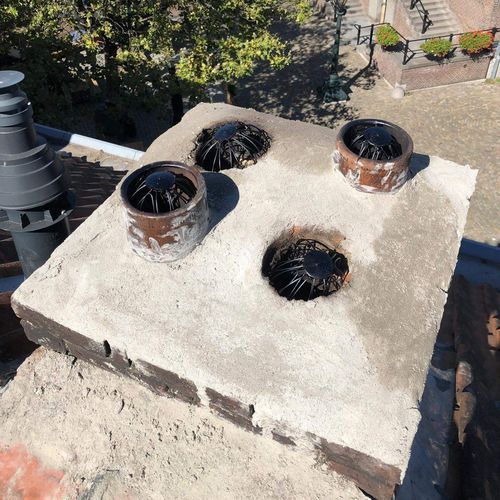 We herstellen het metselwerk, voegen, loodwerk en plaatsen indien nodig een nieuwe schoorsteenkap.